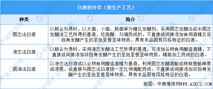 白酒按生產工藝可劃分為三類,分別是固態法白酒、液態法白酒和固液法白酒。